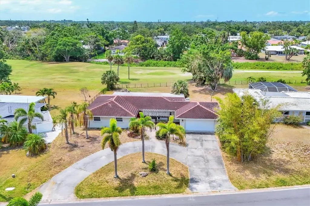 Welcome to 3432 Pine Valley Drive, a hidden gem in the heart of Sarasota, perfectly positioned near the world-renowned Siesta Key Beach, vibrant downtown Sarasota, and the upscale shopping and dining of St. Armands Circle. Also just a short drive away are local favorites like Detwilers Farm Market and the expansive University Town Center, offering a wide variety of dining and shopping options. This 3-bedroom, 2.5-bath home sits on a rare oversized 13,200 sq ft lot, backing up green fairways of the Palms Golf Club at Forest Lakes – offering both privacy and serene views. A spacious circular driveway leads to the two-car garage, providing plenty of parking for family and guests. Inside, you'll find an open floor plan that provides a flexible layout, ideal for modern living and entertaining. The heart of the home flows seamlessly into a large lanai, accessible through three sets of sliding glass doors, creating an inviting indoor-outdoor connection – perfect for Florida living. The home presents a fantastic opportunity to add your personal touch and truly make it your own. Many of the windows have already been upgraded to high-impact, hurricane-resistant, providing peace of mind and excellent energy efficiency. In addition, being in Flood Zone X means you'll enjoy the lowest possible flood risk in the area, a valuable feature for long-term investment and peace of mind. Outside, the expansive lot offers endless possibilities, to create a backyard oasis and plenty of room for a pool. With no direct rear neighbors, you'll have plenty of privacy as you relax and take in the golf course views, framed by mature trees and lush landscaping. With its prime location, potential for personalization, and desirable lot size, this property is an excellent find in one of Sarasota's most sought-after areas. Don't miss the chance to transform this spacious home into the perfect Florida retreat.