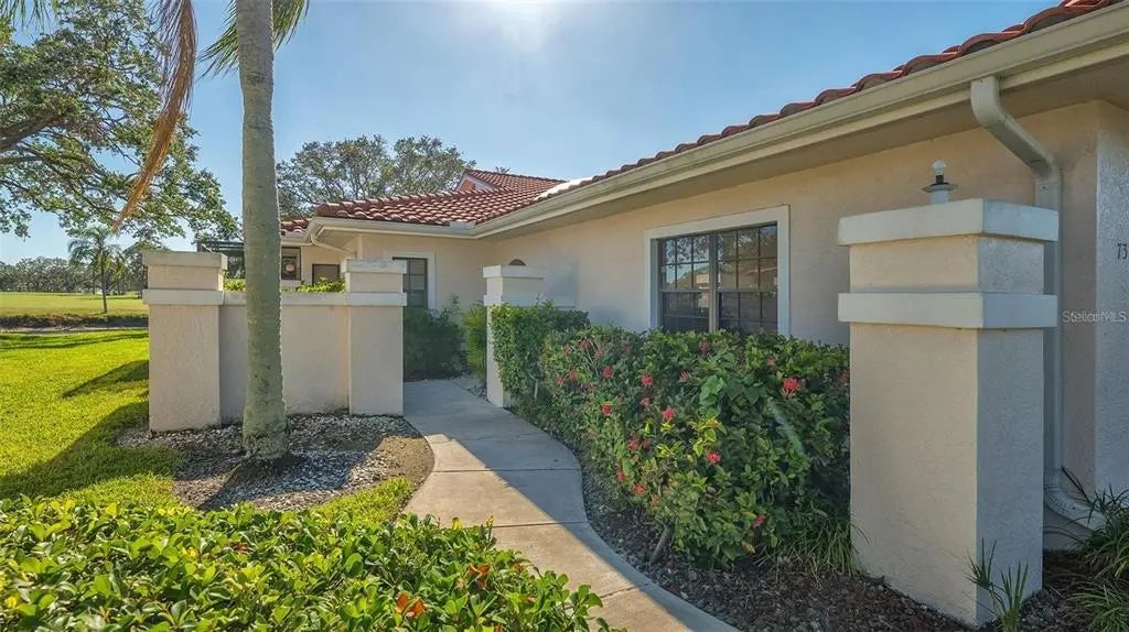 Highly sought-after Golf Pointe Circle Villa in the Palm Aire Country Club. This 3 Bedroom and 2 Bath Villa is being Sold Turnkey Furnished, minus some items (see inventory sheets). Beachy Coastal Decor gives you the feeling of living on the Beach, but even better, you're right on the Palm Aire Golf Course. With over 1,800 sq ft of living space this split floor plan has a Living Room/Dining Room combination, great for entertaining or just a comfortable and enjoyable relaxed environment. Or you might be spending all your time in the air-conditioned Florida Room, where Hurricane Impact Resistant Sliding Glass Doors were added earlier this year giving you sweeping landscapes of the club's practice range, golf course and water views. Starting with your first cup of coffee in the morning to your last evening cocktail enjoying the stunning sunsets. Kitchen has a nice eat-in area with sliding glass doors out to your private screened -in porch, perfect for your BBQ grilling. Primary Bedroom has sliding glass doors out to the Florida Room. The Primary Bath has a large walk-in closet with 2 entrances. Dual sinks, garden tub and separate shower stall. Second and Third Bedrooms are located towards the front of the home and share the second Bathroom, which is next to the closet laundry. All three Bedrooms have newer carpeting. The 2-car garage has plenty of room for your car and your golf cart with storage above if needed. Golf Pointe Community has a clubhouse and 2 heated pools for your enjoyment. Palm Aire Country Club has 2 Championship Golf Courses, Clubhouse, Fitness Center, Olympic Sized Heated Swimming Pool,12 Tennis and 8 Pickleball Courts. Golf, Sport and Fitness and Social/Dining memberships are offered but membership is not mandatory. Convenient location close to the UTC Mall, Benderson Rowing Venue, Sarasota Airport and the local beaches.