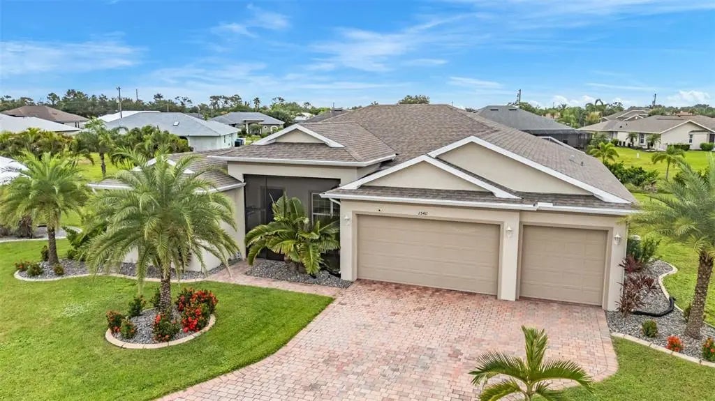 Under contract-accepting backup offers. Stunning 2021-Built Pool Home on a Cul-de-Sac. Welcome to this beautifully designed home tucked away at the end of a quiet cul-de-sac. From the custom curbing and paver driveway to the screened front porch, every detail has been thoughtfully crafted. Step inside to an open and inviting floor plan, perfect for entertaining. The living room, formal dining room, sitting area, and kitchen all flow seamlessly together. The gourmet kitchen features a large island with sink, stainless steel appliances, a built-in wine refrigerator, and a separate beverage refrigerator. The spacious primary suite offers a luxurious ensuite bath with dual sinks, a walk-in shower, private water closet, and generous walk-in closet. Guest bedrooms are thoughtfully positioned with convenient access to two guest baths—one with direct pool/lanai access. The 3-car garage leads into a well-appointed mudroom with storage and a separate laundry room for added convenience. Enjoy Florida living at its finest in the outdoor oasis. The covered lanai and expansive paver pool deck are ideal for relaxing or entertaining. The heated pool features water elements, a sun shelf, and is complemented by a separate hot tub/spa for evenings under the stars. A picture-window pool screen frames the peaceful greenbelt views, enhancing the sense of privacy and serenity. Additional highlights include diagonally laid tile throughout, high-quality finishes, and model-home presentation. This residence is truly move-in ready and a must-see.