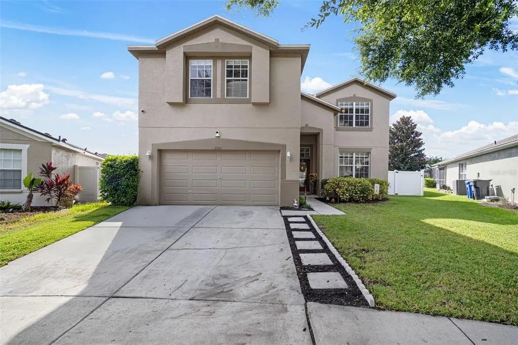 Welcome to this spacious 4-bedroom, 3.5-bath, 2-story home offering 2,433 sq ft of living space. Upon entering the front door, you’ll find a family room or sitting area to your right. As you continue to walk through the first floor, you'll find a formal dining room, a large kitchen with an oversized breakfast nook area, and a living room. The kitchen has stainless steel appliances and granite countertops. Through the French doors off the living room is a screened in pool area with a pavered patio. Outside the pool area is an oversized fenced in backyard with ample room for entertaining. Upstairs you’ll find a private loft area with its own bedroom and bathroom. Right down the hall you’ll find two other bedrooms with built in closets and a guest bathroom. At the end of the hallway is the primary bedroom with an ensuite bathroom. The primary bathroom offers a walk-in shower, garden tub, and a walk-in closet. There is laminate throughout, with the exception of the kitchen and bathroom areas which have tile. The floorplan is included in the pictures so be sure to check it out. The roof, AC and Water Heater were replaced in 2023. The Rivercrest Community has a community pool, workout facilities, and a clubhouse. Interstate 75 on/off ramps are nearby for ease of access to the greater Tampa area. Not many homes built to this size with this much room inside and outside!