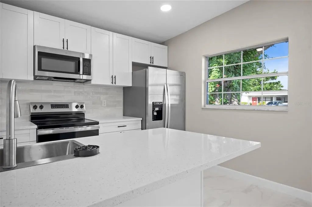 Inside, you’re welcomed by a bright, open interior finished with sleek tile flooring throughout, filling the home with light and a sense of warmth. The kitchen, designed for both everyday living and entertaining, features stylish stainless steel appliances, clean lines, and ample storage.