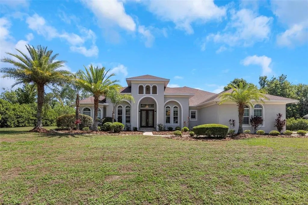 CUSTOM BUILT and JUST UNDER 4,000 SQ FT OF LIVING SPACE! Located in the Desirable and Gated Neighborhood of Saddleridge Estates. BRING YOUR RV! BRING YOUR BOAT! NO CDD FEES and VERY LOW HOA! Homes are rarely available in this private neighborhood- you'll have to visit to see why! This home consists of 4 Bedrooms + 4 Baths + Office + Bonus Room + 3-Car Garage and sits on 1.33 ACRES with CONSERVATION beyond the backyard provides excellent privacy. The location is unmatched! Renovations all throughout the home. As you walk up the travertine walkway and enter the front doors you will be greeted with an elaborate Swarovski Crystal French Empire chandelier in the foyer looking out to a well-conceived open floor plan with beautiful, new porcelain tile throughout. Lots of space in every room and plenty of natural light. A roomy office with French doors on one side and a dining room on the other with a French Empire chandelier in the center. The master bedroom is every couple's dream- spacious with two separate walk-in closets (every bedroom in the house has its own walk-in closet too). The large master bathroom is absolutely gorgeous! Dual sinks, dual shower heads in its shower, and a bathtub. On the opposite side of the house is the 3-car garage, a half bath, and the laundry room. Near the kitchen are two bedrooms separated by a full bathroom. And on the furthest end of the home is a private room and bathroom - perfect for either in-laws or guests! Afterwards, go up the stairs to the generously-sized bonus room- great for a media room, game room, or both! Then make sure to check out the spacious lanai- a wonderful place to set up your favorite patio furniture or hammock with plenty of room to build your dream pool if you so wish. There is lots of space on the long driveway to park your boat, RV, and extra cars to host your next gathering. So many recent updates to list! Appliances, interior and exterior paint, garage flooring sealed with protective coating, new shelves across 36 feet of garage walls, large baseboards, LED lights and ceiling fans, kitchen sink with touch control faucet, all quartz counter tops and soft-close high quality 3/4" wood cabinets in kitchen and all bathrooms, faucet and tub sink in the laundry room, all brushed nickel door hinges and doorknobs, septic pump replaced August 2023 and comes with a warranty, carpet in all four bedrooms and bonus media/game room, Rheem AC compressor installed in 2020, all five exterior light fixtures, and more! The house also comes with an irrigation system, closed circuit Samsung HD camera system, alarm system with motion sensor, intercom system throughout the house. There is a tennis court just a few houses down that you can play on everyday! You are close to everything you could ever want and need- major highways, schools, several hospitals, offices, grocery and all kinds of shopping malls, 30 minutes from the Tampa International Airport, and so much more! It doesn't get better than this! Schedule your showing today! One or more photo(s) has been virtually staged.