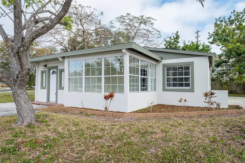 BACK ON THE MARKET!! Great corner lot for this nicely updated 4 bedroom, 2 bath home! Upgraded with brand new light white oak flooring throughout creating an open and seamless feel. This large and spacious home has a great floor plan flow with one side of the home having an expansive bedroom with it's own separate entrance, indoor laundry area, and en-suite bathroom. The kitchen and living room with 3 large bedrooms and a bathroom are separate from the other side of the home . The fourth room is surrounded by windows spanning both walls overlooking the front yard and providing beautiful, natural sunlight! This room can be used as a large bedroom, family room, office or as a Florida sitting/reading room. The kitchen has shaker style cabinets with a contemporary backsplash and thick granite stone countertops. There is also a brand new stainless appliance package with a French door, bottom freezer fridge, convection fryer oven range, microwave, and dishwasher. Both bathrooms have also been updated with a new vanities and contemporary brush nickel fixtures to accompany. There is a large parking pad for the driveway and a huge shed in the backyard for additional storage space. The home also has solar panels for added energy efficiency too! This home would also be great to use as an in-law suite since the other side has it's own entrance OR even as an investment unit for additional rental income if you decide to rent that side of the house! It's well located right off of 66th St N near the Park Blvd/Gandy Blvd artery that leads directly to US Hwy 19 N and I-275. Close to the Tyrone shopping area and our amazing local beaches within a few minutes drive to either. Take your opportunity to own an ideal sized 4 bedroom, 2 bath home in a peaceful, desirable location! PLUS this home is higher elevated and not in a flood zone, no flood insurance required.