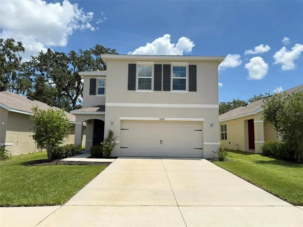 This stunning 4-bedroom, 2.5-bath residence, constructed with all-concrete block, showcases a two-story layout featuring a kitchen with views of the living and dining areas, a powder bath, two storage closets, and an outdoor patio on the first floor. Upstairs, the expansive owner's suite boasts a spacious walk-in closet and ensuite bathroom with linen closet. Three additional bedrooms share a second bathroom. The loft area at the top of the stairs provides supplementary space for work and leisure, as well as an additional closet for enhanced storage capacity. This home includes a refrigerator, built-in dishwasher, electric range, microwave, washer, dryer, and water softener.