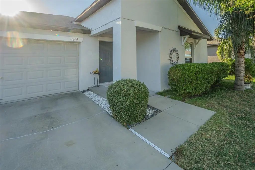 Beautiful tidy spacious 3 bedroom, 2 oversized baths with 2 car garage home. The special uniqueness to this gem is the premium lot which bodes serenity and tranquility nestled in a private preserve tropical oasis. Entertain until you drop in the backyard or curl up with your favorite book while enjoying mother nature. Gorgeous sunsets with a fenced in backyard allow you to absorb special evening moments without neighbors. Entry from a covered porch welcomes two specious bedrooms in the front of the house. As you move from the foyer it leads you to an exceptional open floor plan with kitchen with 42” cabinets with matching counter tops and coffee bar, dinning room and grand room combination. The primary bedroom retreat has accommodating double sinks with raised counter tops as an upgrade, decorative tiled shower with a roomy walk in closet. Beautiful matching luxury vinyl floors and newly fresh paint provides a crispy feeling. Extended 2 car garage and allows an additional area for hobbies and extra storage room. Conveniently located near major box stores, bistros, retail centers, restaurants. Minutes away from YMCA, and modern St Jospeh Hospitals, medical facilities, great schools, baseball sporting facilities, two Publix’s, Sams Club are nearby. Large luxury community pool, home offers easy direct access to route 301 and I-75, allowing seamless journeys to the airport, major league sporting venues, cruise terminals, and beautiful sandy Gulf Beaches. Call for a private showing.