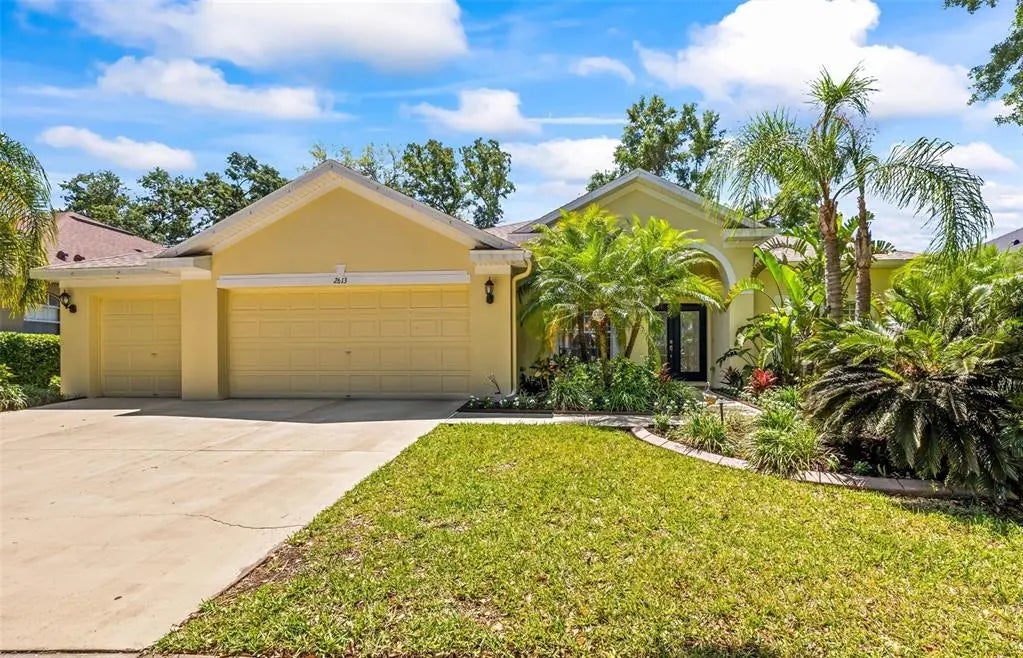 Under contract-accepting backup offers. VERY MOTIVATED SELLERS! Welcome to your dream home! This exquisite 4-bedroom + office, 2-bath, 3 car-garage home is nestled in the beautiful gated community of Bonterra. As you walk through the beautiful double entry doors, you notice the thoughtfully designed three-way split floor plan that offers both privacy and functionality. Step into the gourmet kitchen featuring 42-inch warm spice wood cabinetry with soft close doors, granite countertops and stone backsplash. The kitchen has a lovely breakfast bar and is fully equipped with stainless steel appliances including a Bosch dishwasher. The inside utility room is steps away from the kitchen and includes a matching washer & dryer. The expansive primary bedroom is a true retreat featuring a door to the screened lanai, a coffered ceiling and an en-suite bath. As you enter the spacious en-suite bath, you notice the granite countertops of the dual sink vanity, an oversized shower, garden tub and walk in closet. On the opposite side of the home, there are two bedrooms and a hall bath with a dual sink vanity, granite countertops and a door that opens to the lanai. At the front of the home is another bedroom and a den/office with beautiful French doors. The living room is very spacious and features crown molding, built-ins and triple sliders that open to the screened lanai. Additional highlights include a roof installed 2021, whole house water softener, natural gas water heater, lush landscaping with poured concrete curbing and a vinyl fenced back yard. This home combines luxury, comfort and style. Call today for your private tour!
