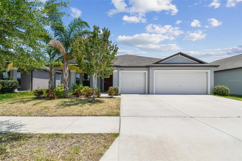 Welcome home to this beautifully maintained 4-bedroom, 2.5-bath home located in the desirable community of Ventana in Riverview. Enjoy your morning coffee on the charming covered front porch before entering a spacious foyer with high ceilings. The private flex room is perfect for a home office, den, or additional living area. The kitchen features stainless steel appliances, granite countertops, and a large walk-in pantry—open to a dining/living room combo filled with natural light. Half bath located between the flex room and living room providing convenient accessibility. The living room includes a ceiling fan, multiple windows, and access to a rear patio. The master suite includes a spacious walk-in closet and en suite bathroom with dual vanities, linen closet, and walk-in shower. A split floor plan separates the secondary bedrooms, which feature carpet and ceiling fans. The guest bath includes dual sinks and a private shower area. Additional features include a separate laundry room with washer and dryer, a 3-car garage with ample storage space, and a partially fenced backyard with a spacious green lawn—ideal for relaxing or entertaining. Amenities include community pool, courts, and green space great for enjoying Floridian weather. Located minutes from I-75, new Advent Health hospital, shopping and restaurants, giving easy access to downtown Tampa, airport, and attractions.