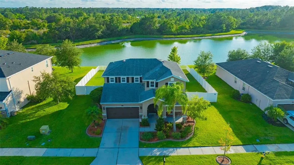 Under contract-accepting backup offers. One or more photo(s) has been virtually staged. SELLER IS OFFERING 2.75% ASSUMABLE VA LOAN TO ACTIVE AND FORMER MILITARY! IMMACULATE two-story home situated on a large fenced lot overlooking the pond and conservation and is located in the heart of Wesley Chapel. This 4 bedroom, 3.5 bath home has everything you’re looking for and more! As you enter the home, to your right is a space for your formal living room, office, playroom – possibilities are endless! The eat-in kitchen features GRANITE COUNTERS, breakfast bar, 42” upper cabinets with crown molding, and is open to the family room, so you’re part of the action while entertaining. The spacious primary suite is located on the main floor and features trayed ceiling, a luxurious en-suite bath with dual sinks, HUGE WALK-IN CLOSET, large shower and separate soaking tub. Upstairs is the loft area (perfect for that 2nd or 3rd living area we all need), and 3 additional bedrooms. One of the upstairs bedrooms has an en-suite bath which could be a 2nd primary suite (does that even make sense?). The fenced back yard is spacious enough to build a swimming pool and overlooks the pond and conservation. Westward views reveal STUNNING sunsets in the evenings - are you ready to relax now? The home is situated in the highly desirable community of Avalon Park which has two resort-style pools, a spa, clubhouse, splash park, playground, basketball, volleyball, dog park, tennis courts and miles of walking paths, top rated schools within the community and the upcoming DOWNTOWN for dining and shopping. Avalon Park is minutes from I75/275, hospitals, Wiregrass Mall, Tampa Premium Outlets and so much more! Schedule your opportunity to view this home today! Note: Matterport 3D tour is Tour#2 on this listing.