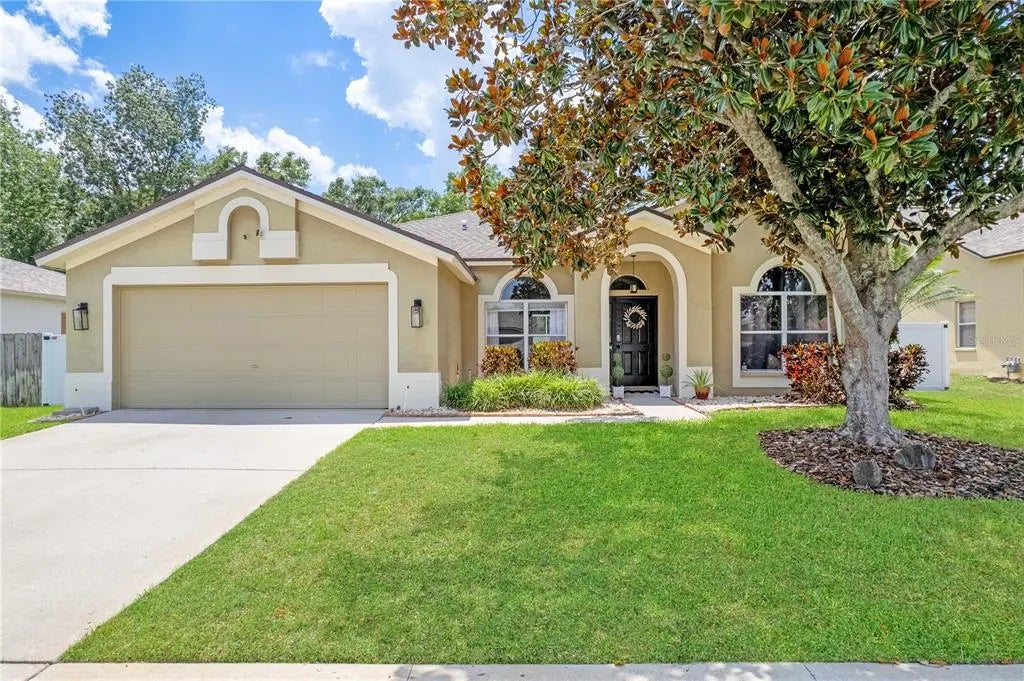 Welcome to The Estates of River Crossing—a highly sought-after community in Bloomingdale offering an incredible lifestyle with just a $21/month HOA and NO CDD fees! This beautifully maintained home features nearly 2,300 sq ft of heated living space, soaring ceilings, and a neutral palette ready to complement your personal style. The 3-way split floor plan is ideal for privacy, with two bedrooms tucked in the back, one in the front, and the spacious primary suite on the opposite side of the home. The open-concept design is flooded with natural light, creating a bright and airy feel throughout. The kitchen is a dream for any home chef, offering expansive counter space, and stainless steel appliances. The heart of the home is the spacious family room, featuring sliding glass doors that open to a screened, pavered lanai and sparkling pool—a true indoor-outdoor living experience. The fully fenced backyard offers privacy and space to host unforgettable summer gatherings. A dedicated theater room adds extra entertainment value, ideal for movie nights or game days with friends and family. The oversized primary suite offers a luxurious retreat with a HUGE walk-in closet, dual vanities, a soaking tub, and a seamless glass shower. Upgrades for peace of mind: New Roof (2019), HVAC(2023), Water Heater(2022), Pool pump (2022), Fence (2023), Refrigerator (2025), Stove (2025),Dishwasher (2025).Take advantage of the incredible community amenities nearby, including: BLOOMINGDALE EAST PARK with 4-tennis courts, 2-PICKLEBALL courts, 2-Basketball courts, 4- Racquetball courts and a playground. BLOOMINGDALE GOLFERS CLUB, a Ron Garl Signature Course rated 4 stars by Golf Digest. ALAFIA RIVER STATE PARK, just 10 minutes away, with camping, canoeing, and hiking. Convenient access to shopping, dining, and major roadways including the Crosstown Expressway for an easy commute to downtown Tampa. This home offers the ideal blend of location, comfort, and lifestyle—schedule your private tour today!