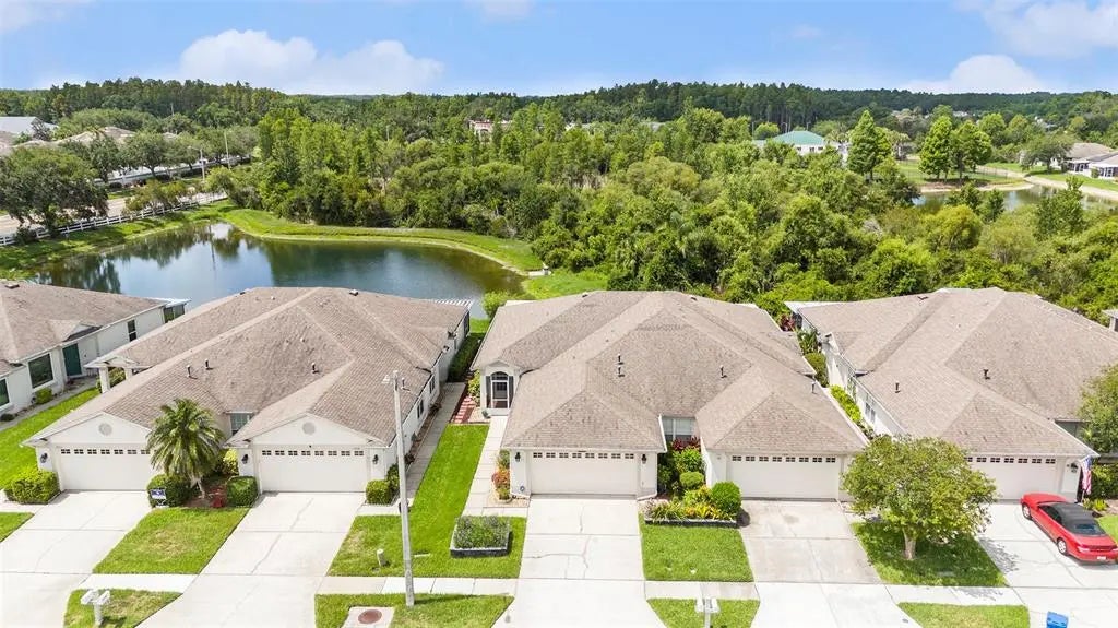 Under contract-accepting backup offers. *SELLER MOTIVATED* Seller is open to contributing towards Buyer Closing Costs or Rate Buy Down. Welcome to Maintenance-Free living at its best! This 2 bedroom, 2 bath PLUS den/study VILLA is located in the highly desirable gated community of LONGLEAF, within Meadow Pointe in Wesley Chapel. Step inside through the private side entrance and discover a warm, inviting layout. The kitchen is nicely situated and features granite counters, eat-in dinette area, newer stainless steel GAS range, dishwasher and microwave. You will love the open-split floorplan which showcases a large great room, NEW CARPET throughout and clear sightlines all the way through to the back lanai. The primary suite includes a spacious bedroom and en-suite bathroom with an oversized standup shower, double vanity and his/her walk-in closets. Step outside through the French door and into your backyard oasis that looks out to a picturesque POND. No rear neighbors! This private, enclosed lanai is a perfect spot to unwind or entertain guests. With over 200 sqft this space is a true Florida Room as you can open the windows and enjoy a beautiful day through the screens or close it up, add a mini split/wall unit and enjoy it all year round. Resort-Style Amenities include Clubhouse, Fitness Center, community Pool, Tennis/Pickle Ball/Basketball courts, playground, splash pad and community events. The low HOA includes a private gated entry, roof, exterior painting, reclaimed water for irrigation and all lawn care. Located near top rated schools, shopping and dining at Shops at Wiregrass and Premium Outlets, golf, nature and bike trails, this maintenance free villa is perfectly positioned for convenience and connection to all your everyday needs.