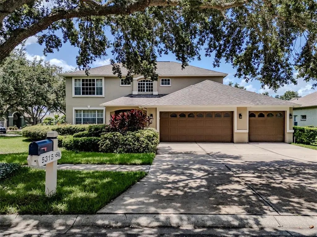 This 5-bedroom 3 bath home is located in the highly sought-after 24-hour guard gated River Hills Golf Club Community! The open kitchen offers lots of cabinets & granite countertops and tiled backsplash. The breakfast nook offers a bay window overlooking the sparkling pool. The family room features triple glass sliders that open to the lanai. There is a formal living room and dining room offering loads of space for your holiday dinners. The large primary suite is upstairs and features double doors a sitting area or office area with LVP flooring. The En-suite features a walk-in shower, dual sinks, a soaking tub and two walk in closets. There are three spacious secondary rooms upstairs. The 5th bedroom is downstairs with access to the full bathroom. The grand entry has double front doors opening into foyer with vaulted ceiling, LVP flooring, new carpeting, fresh paint, ceiling fans throughout. the storage under the stairs is great for storing holiday decor. The AC was replaced last year. The covered screen enclosed lanai is the perfect place for entertaining with the oversized pool and lanai space. The lanai features a wood ceiling with two ceiling fans. This house sits on an oversized corner lot with no backyard neighbors and offers great curb appeal with the lush landscaping. Brand new beautiful LVP flooring in the foyer, family room, kitchen, bathroom and laundry room and upstairs hallway, bathroom and sitting area in primary bedroom. River Hills community is private and has plenty to offer including nature trails, planned community events like concerts in the park, holiday tree lighting, golf cart parade, resident and guest access to a workout room, dining at the club, and the swimming pool. For additional fees you can also enjoy playing golf on one of the area's most desirable golf courses or play tennis on the clay courts.