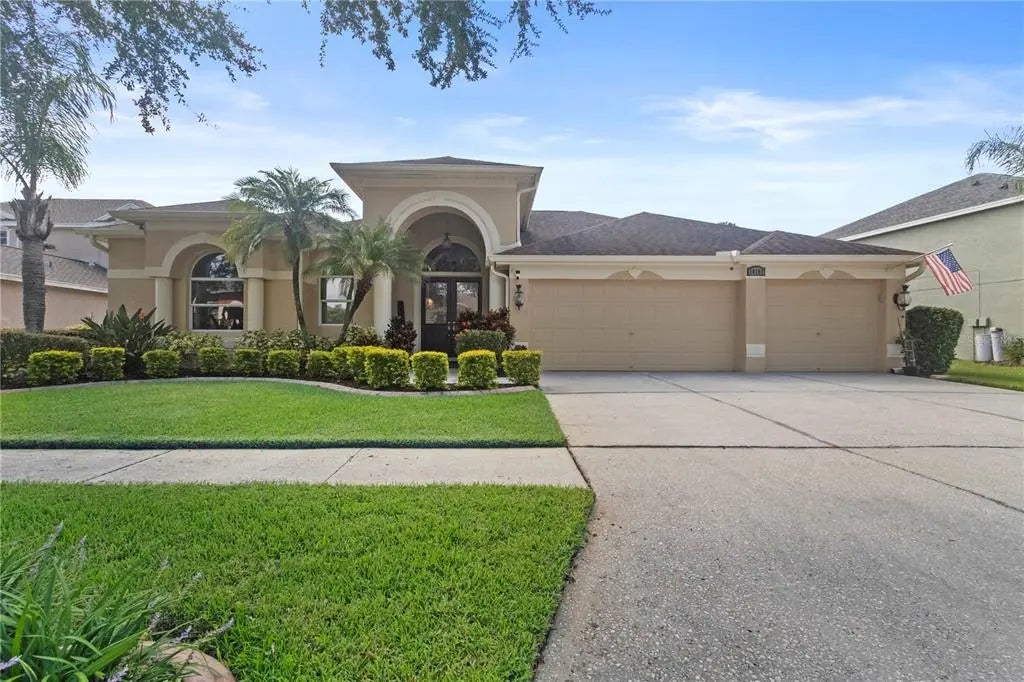 Under contract-accepting backup offers. Step into timeless Florida living in this spacious and move in ready 4-bedroom, 3-bath, 3-car garage, pool home, perfectly situated in the sought-after Heritage Isles golf community in New Tampa. With over 2,800 sq. ft. of living space, this residence offers the ideal blend of elegance, comfort, and resort-style amenities. From the moment you arrive, the home welcomes you with lush landscaping, large covered entry and double front doors. The beautiful luxury vinyl plank flooring beckons you inside. The formal space features a large dining room and a living room with electric fireplace. A perfect space for family dinners and coffee by the fireside. The gourmet kitchen features wood cabinets, granite countertops, backsplash, newer professional appliances, induction range and walk-in pantry. The large island bar has plenty of space for friends and family to gather while the chef is cooking. The space flows seamlessly into the expansive family room with large windows that bring in the sunlight (plus remote control blinds for privacy). The built-in entertainment center with electric fireplace makes a cozy place for movie night with space for large screen TV. The split-bedroom plan provides comfort and privacy for guests or family. The large 4th bedroom (fits a king sized bed) is private and adjoins the pool bath. The other well-sized secondary bedrooms share the hall bath. The hall bath has double vanity, separate water closet and large linen closet. The owner’s suite features a large private retreat with views to the pool lanai. The owner’s bath evokes a spa-like feel with garden tub, luxurious shower panel with jets and rain shower head, double vanity, separate water closet, and large walk-in closet and 2 linen closets. Step outside to your own private paradise: a screened-in salt pool with spa overlooking the lush landscaping and views of the golf course. Fire up the grill or grab your favorite beverage from the outdoor kitchen. If you need a break from the sun, press the button for the Sunsetter shade. This backyard oasis is the ultimate spot to relax and entertain! This home is truly spectacular with so many upgrades: • whole house generator • A/C in 3 car-garage • professional stainless appliances • A/C 2023 • bath updates • vinyl plank & tile flooring • blinds/remote control blinds • Sunsetter patio shade • outdoor kitchen • updated landscaping & curbing. Enjoy all the benefits of living in Heritage Isles, from golf at your doorstep to a vibrant community atmosphere with scheduled neighborhood activities like trivia, karaoke nights & holiday events. Enjoy breakfast, lunch or dinner, meet friends for cocktails or watch Monday night football at Bay Scape Bistro. The community amenities include pool with park style slide, lap lanes, family areas and splash area as well as a playground. The athletic center features 2500 sf of gym space with state-of-the-art exercise equipment as well as free-weights. There is also space that can be rented for private events. This stunning home and golf course paradise are located minutes from shopping, dining, and top-rated schools with easy access to I-75.