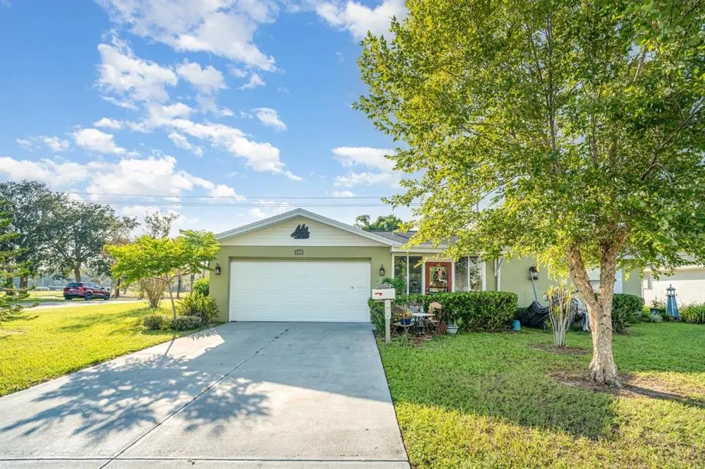 2.75% Assumable VA Rate! Discover your dream home in Del Webb’s Sun City Florida 55+ community! This move-in-ready 3-bed, 2-bath gem on a corner lot features a new roof (2022), A/C (2023), and flooring (2024). The kitchen boasts granite countertops, abundant cabinet storage, and a stylish island/bar with a breakfast counter. Relax in the enclosed lanai or front porch. The 2-car garage adds space, and there are no HOA/CDD fees (register at the community center after closing). Perfect for low-maintenance living near hospitals and shops. Schedule your tour today!