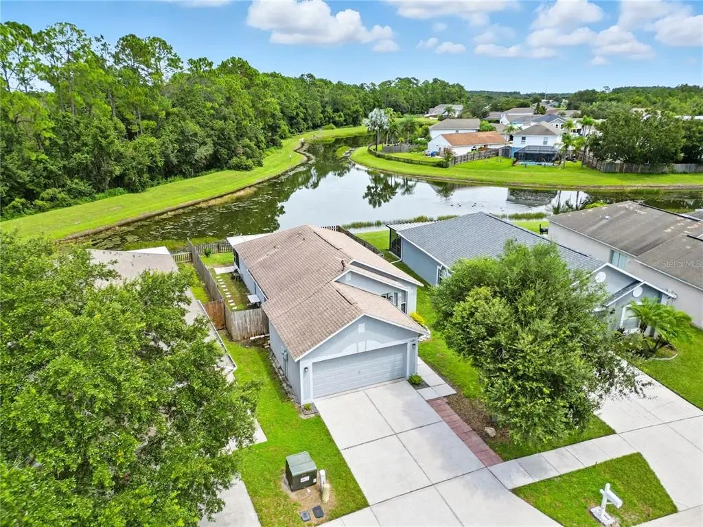 Under contract-accepting backup offers. Welcome to your dream home in the desirable community of Chapel Pines! This beautifully updated 3-bedroom, 2-bath, 2-car garage home offers a tranquil pond and conservation view setting with the perfect blend of comfort and modern style. Step inside to an inviting open floor plan with vaulted ceilings and abundant natural light. The home boasts tile flooring throughout for durability and easy maintenance. Both bathrooms have been tastefully updated, while the remodeled kitchen (2022) features sleek cabinetry, matching appliances, and a bright island design—ideal for cooking and entertaining. Fresh interior and exterior paint add to the crisp, move-in-ready feel.The private owner’s suite showcases peaceful pond views with direct access to your outdoor retreat. Enjoy the covered, screened lanai or fish from your own waterfront deck while watching local wildlife. A fenced yard adds privacy, while sidewalks, streetlights, and low HOA fees enhance everyday living. Recent upgrades include a roof (2021), A/C (2019), newer garage door opener, and an attached 2-car garage with a Level 2 EV charging plug. All appliances are included. Conveniently located just 1.5 miles from elementary, middle, and high schools, and minutes from Wiregrass Mall, Saddlebrook Resort, local beaches, and major highways (I-75 & I-275). This waterfront gem is truly turn-key and move-in ready—schedule your private showing today!
