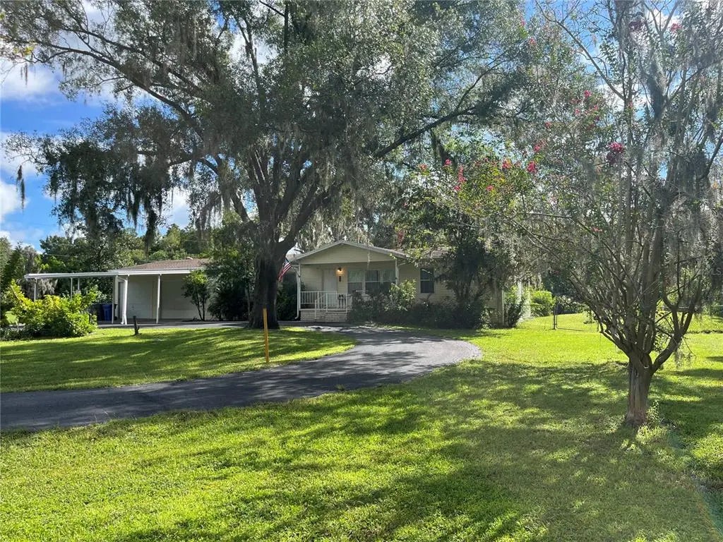 Under contract-accepting backup offers. Nestled in 1.5 acres of pristine land and in a quiet neighborhood, this meticulously maintained manufactured home is ready to welcome its new owners! Get ready to be enchanted from the moment you see the elegant, circular driveway, guaranteeing privacy and comfort as it leads you to the property entrance. The residency boasts a generous 1800 sq ft of living space with three ample bedrooms, each one with walk-in closets, two full bathrooms; a spacious living room with a cute fireplace; a well-appointed dining room; and a well-equipped kitchen and laundry room. An enormous porch at the back of the property will be the perfect spot to enjoy the magnificent of this gorgeous lot. The backyard is armed with a workshop, shed and other additional structures. The property runs with a septic and well with water softener service. This beautiful home also features an oversized garage and carport, plus an extensive driveway. It was updated a few years ago to ensure plenty of comfort, and it is full of potential for a creative buyer looking for a peaceful retreat, tranquil environment with the convenience of being just minutes away from shopping districts, hospitals, restaurants, schools, and easy access to the I-4, I75, Hwy 301 and 92. Attention buyers! No flood insurance, No HOA, No CDD. This is a great opportunity! Call us for details and send your highest and best offer before it is gone.