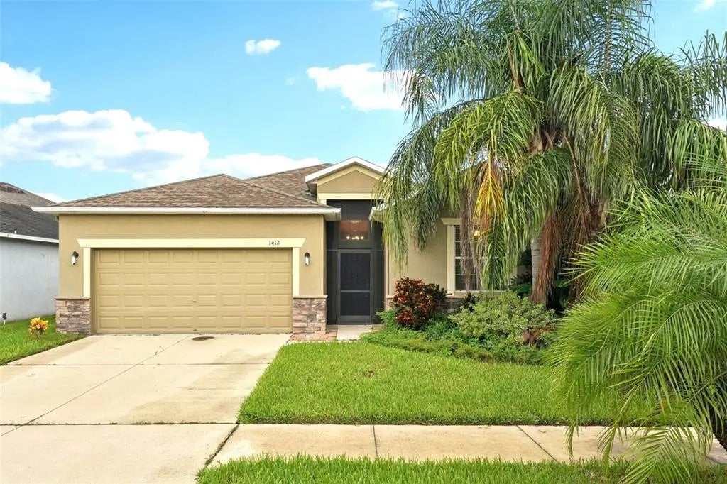 One or more photo(s) has been virtually staged. Welcome to your new home in the gated community of Hawk’s Point, right in the heart of Ruskin! This 4-bedroom, 3-bath beauty with a 2-car garage is ready for its next chapter, and wait until you see how amazing it shows. Pride of ownership shines through with freshly painted walls and ceilings, laminate and tile flooring throughout, a brand-new lawn and sprinkler system, and thoughtful updates throughout. Inside, the kitchen is a dream with stainless steel appliances (NEW Stove), granite counters, maple cabinets, and crown molding—perfect for everyday cooking or entertaining. The spacious primary suite offers two walk-in closets, dual sinks, a relaxing garden tub, and a walk-in shower. One of the additional bedrooms has its own private bath, making it an ideal setup for guests or extended family. Step outside to the screened-in lanai where you can relax and enjoy peaceful water views and breathtaking sunsets—an ideal spot for cooler fall evenings. Hawk’s Point is a vibrant, amenity-rich community featuring swimming pools, playgrounds, dog parks, a clubhouse, and plenty of natural beauty with conservation areas and ponds throughout. This home has the perfect mix of comfort, convenience, and charm—don’t miss the chance to make it yours!