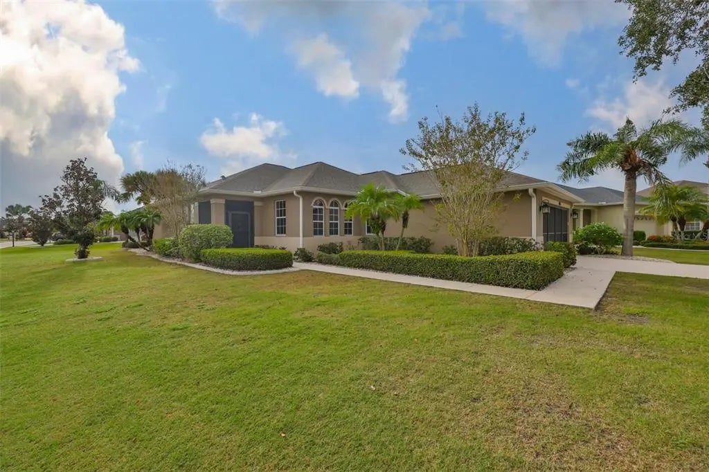 Under contract-accepting backup offers. Click on 3D tour above ----- BEAUTIFUL HOME IN A PEACEFUL CUL DE SAC WITH WATER & GOLF COURSE VIEWS! Welcome to retirement living at its finest in the active 55+ community of Renaissance, where you'll feel like you're on vacation every day! This immaculate & perfectly maintained, PARTIALLY FURNISHED home boasts 2 bedrooms, 2 full baths plus a den/office. You'll love the modern open floorplan, neutral decor and ceramic tile flooring in the main living areas. For an extra bonus, the large great room was extended by 10 x 24, with 2 separate entryways to the lanai area. This extension is the perfect space for your dining room, hobby room or entertainment area. The kitchen is wide open to the home and boasts lovely wood cabinetry, stainless appliances, including electric range (2023) and breakfast bar for extra seating. The 2 spacious split bedrooms & bathrooms are at the opposite end of the home for extra privacy. The den/office can easily be used for a 3rd bedroom if needed. This home features a stunning 25 x 26 brick paver, screened lanai (2015) that faces the pretty water & golf course views. Recent upgrades are, NATURAL GAS WATER HEATER 2024, ROOF 2022, HVAC (NATURAL GAS FURNACE) 2018 and SLIDERS TO LANAI 2018. This home is just a short golf cart ride to the neighborhood Club Renaissance, where you can enjoy dining, drinks, social activities, resort-style pool, fitness classes, spa and so much more. You'll also have access to the numerous Sun City Center amenities such as restaurants, shopping, banking, medical facilities, numerous social clubs, various sports clubs and tons more, all accessible by golf cart. Sun City Center is conveniently located to major highways, airports, Tampa, Sarasota and award winning beaches. So come and visit this beauty today and see why you'll want to call it home!