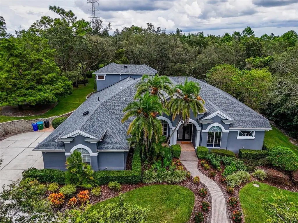 HUGE PRICE IMPROVEMENT!!!!!Welcome to this stunning Marc Rutenberg residential designed home offering the perfect blend of space, comfort, elegance & privacy. Featuring 5 spacious bedrooms, and 3 full bathrooms, a dedicated office, and a game room space for fun and Sunday sports. The primary suite is a true retreat, featuring an expansive bathroom with a luxurious soaking tub, oversized walk-in shower, and dual vanities. Through the bathroom, you'll find an extremely spacious master closet offering an abundance of storage, as well as an additional separate walk-in closet-perfectly designed for ones spouse. On the opposite side of the home, the thoughtful split bedroom layout provides two bedrooms and a bathroom, while another two bedrooms share a full bathroom nearby. From this wing, a staircase leads to the upstairs game room. This home is designed to accommodate both family living and entertaining with ease. The heart of the home offers two inviting living rooms and a kitchen that opens to serene views of the sparkling solar heated salt water pool and spa, creating a seamless indoor-outdoor lifestyle. The pool solar panels are fully paid off. This home is nestled on 2 or more acres of beautifully manicured, mature landscaping at the almost end of a quiet dead-end road Cul-De-Sac, the setting provides unmatched privacy, charm, and feel of resort style living. Did I mention NO HOA? Every detail, from the expansive grounds to the resort-inspired outdoor space, makes this home a true sanctuary while you practice your putting on the green out back. This home has been thoughtfully updated with valuable features, including a whole-home Generac generator(2019), New shingle roof(2021), and a tankless water heater(2019). Additionally enhancements include a water softener(2025), hurricane-anchored pool cage(2021), and replacement of one of the two 5-ton HVAC units(2025). Enjoy a whole-home integrated speaker system with seamless indoor and outdoor audio-perfect for entertaining. With many more upgrades detailed in the attachments, this property has been meticulously maintained to provide comfort, efficiency, and peace of mind for years to come.